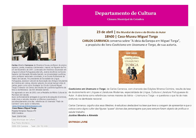 o Prof. José Carlos Seabra Pereira (professor catedrático da faculdade de letras da Universidade de Coimbra), que falará da obra do poeta, e com o Dr. Lino Vinhal (Grupo Media Centro) que apresenta e modera a sessão.